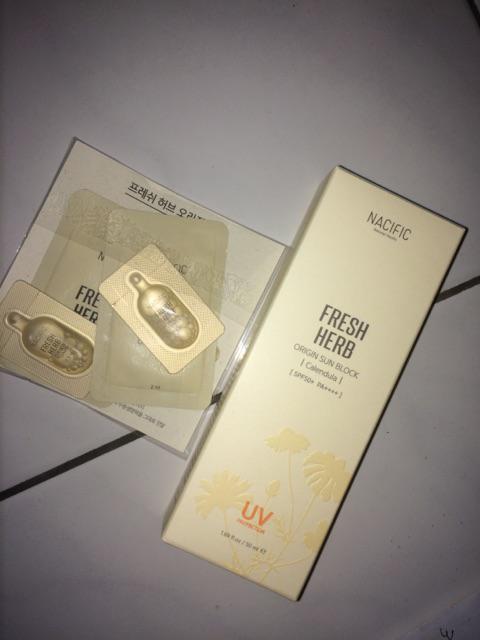 6. **NACIFIC**FRESH HERB ORIGIN SUN BLOCK. Ini baunya juga enak. bau jeruk dan saya ini beli langsung dari toko officialnya di shopee. Dikirimnya juga langsung dari korea.